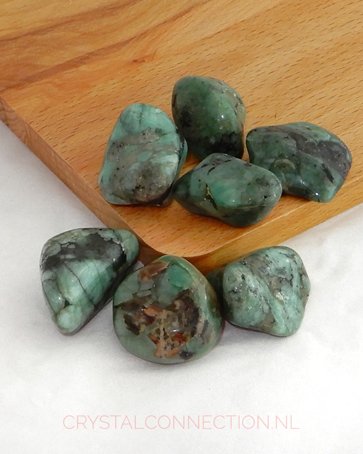 Smaragd, die het hartchakra beter laat doorstromen. Geeft balans vanuit het hart en stuur zo de energie naar beneden en naar boven.