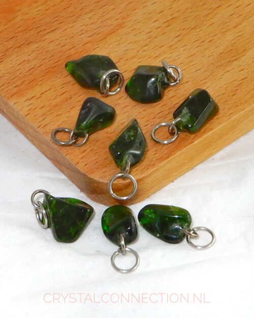 Diopsiet hanger is er in verschillende varianten. Getrommeld Afm. 1,0-2,5 cm. € 6,00 Half getrommeld Afm. 1,0-2,0 cm. Prijs: € 5,25 Chroomdiopsiet Afm. 1,0-1,5 cm. € 12,25 Sterdiopsiet Klein/rond afm. 1,0-1,2 cm. € 16,50 Middel/ovaal afm. 1,5-1,7 cm. € 24,50…